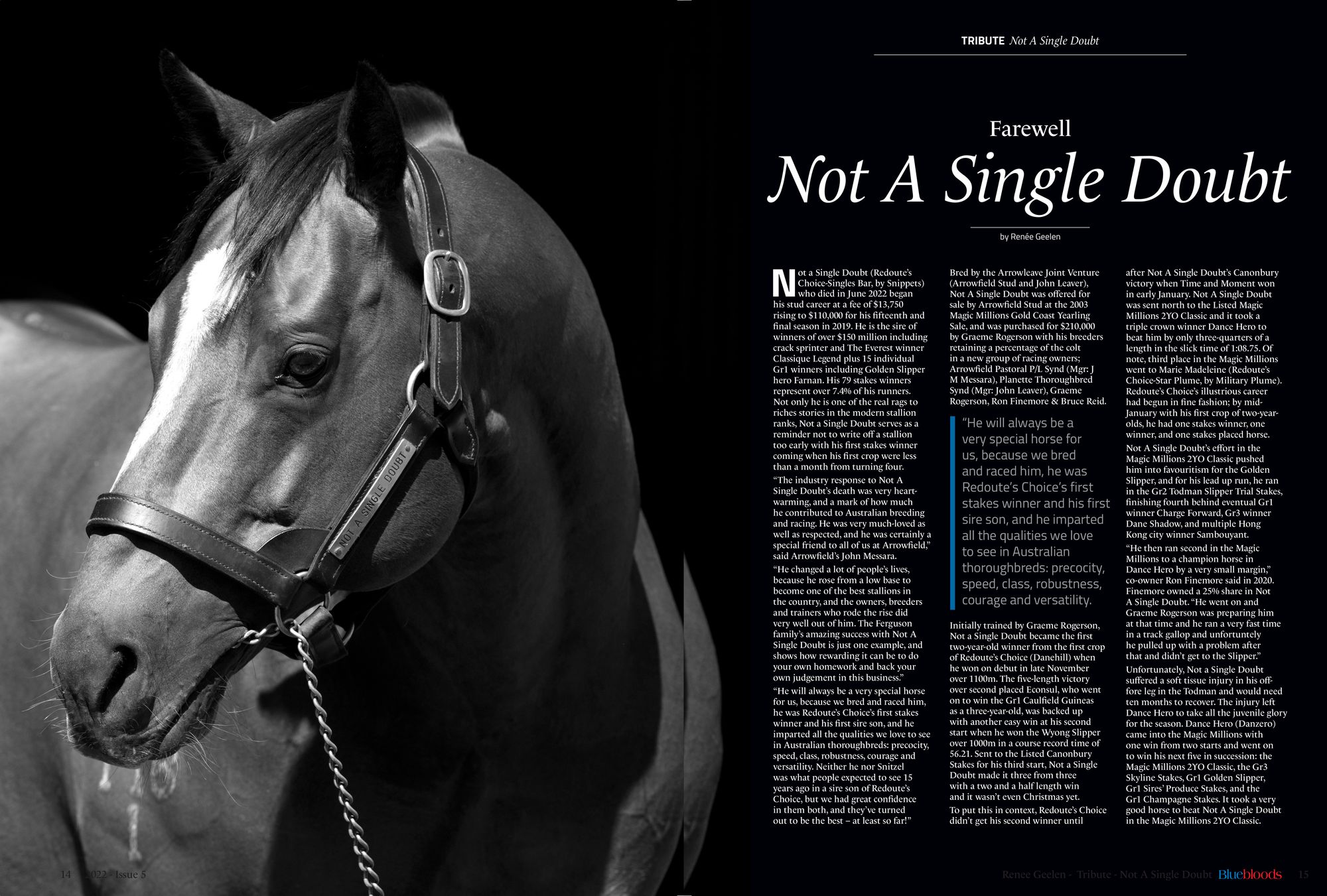 Each bi-monthly BLUEBLOODS presents a Personality Profile, a Stallion Profile and pedigree analysis, all written by a team of expert, authoritative journalists and contributors.